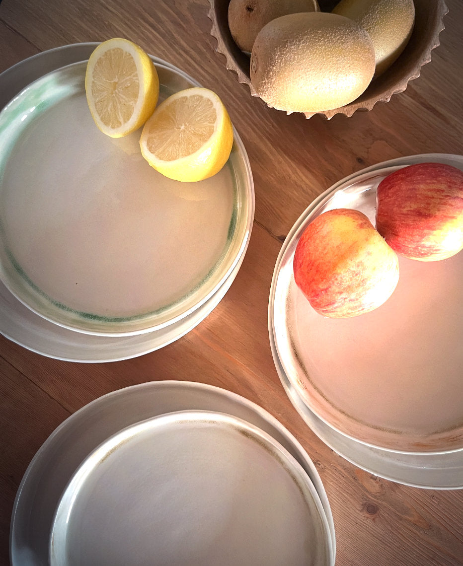 Inspired by the hills of Asturias in northern Spain, a perfect feast for nature. This collection, with its thicker heavier forms, is complemented by the use of a soft opal glaze. By adding hints of greens and browns, it brings the outside in and nature a step closer to home.