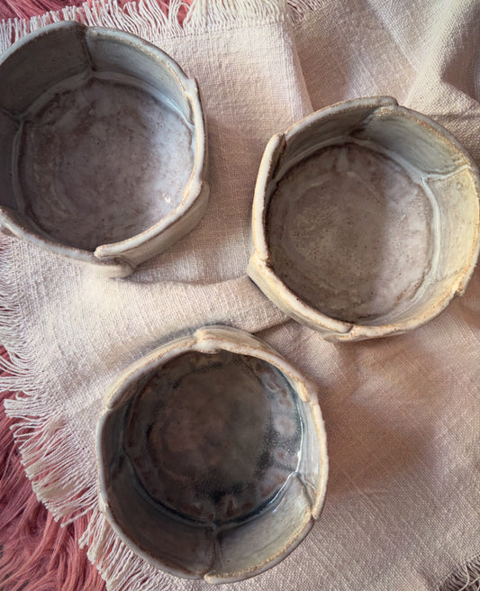 I allow the pottery to dry slowly to ensure it is ready for the first bisque firing. The glaze is then applied using a brush on technique before the pieces undergo a second firing. Finally, all items are carefully sanded and cleaned to achieve a smooth finish.